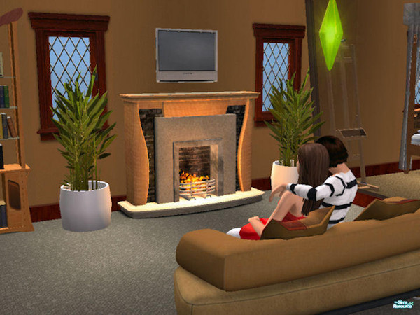 My young sim couple sitting by the fire.