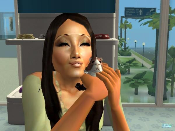 In the pet store my Sim lady just could not keep her hands off the cute little hamster (Hammy, as I like to call him.). ^^
