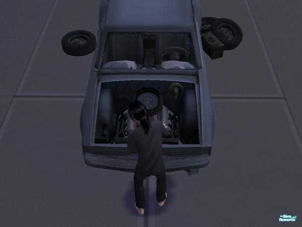 Here's the dad of my sim family, working away on the car which was meant to be a birthday present for his son. Now if only he didn't decide to set fire to himself with it in his inventory! *doh* rofl.