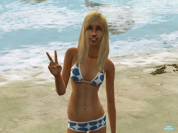 One of my first permanent platinum mood sims, Kenna, enjoys an island vacation. Thank you to the talented artist that made her cute bikini!