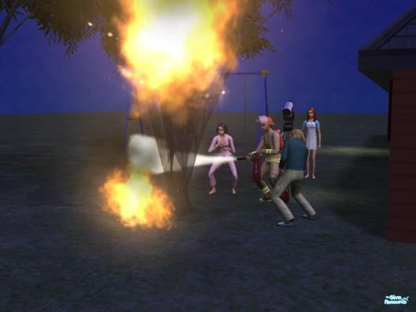 ...Because sometimes the rain stops and the tree is _still_ on fire, and your Sims will drop _whatever_ they're doing and run out and dance around the tree shrieking no matter how much you furiously cancel the "ZOMG FIRE!" icons in their queues and try to get them to do something else. Eventually you might actually manage to get one to call the fire department, but during that another one of these doofs will manage to catch _himself_ on fire by running right into the burning tree. Idiots.