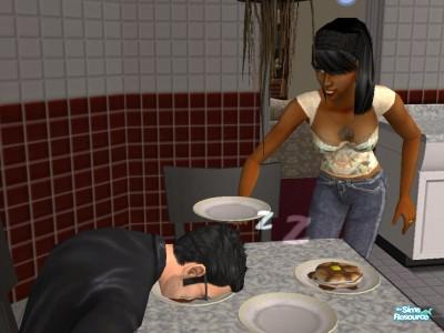 Yea, he feel asleep in the food again. Too many long hours at work i bet ;)
