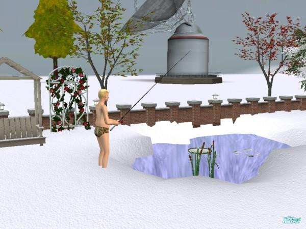Oliver looks crazy fishing during winter wearing only his undies :D