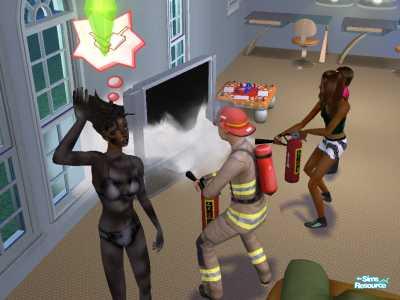 Poor miss Birder tried to fix the television, got electrocuted, started a fire, and as you see, is not feeling very comfortble!!! Poor,Poor miss birder.... HAHAHAHA-I'm evil for making a low skilled sim to try fixing a t.v....:P