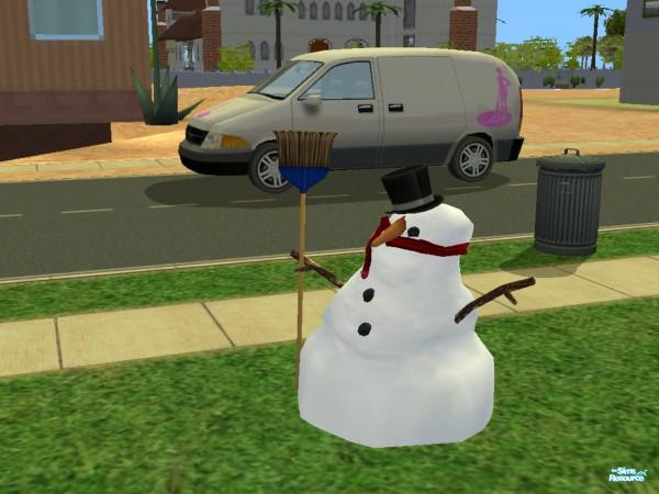 Just a melting snowman with the cleaning van in the background.