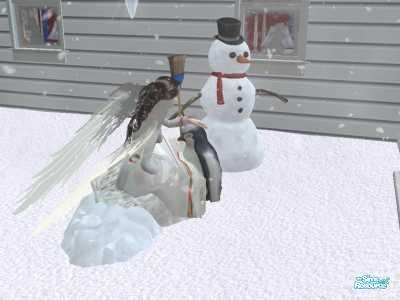 Oh, look! Her snowmen attracted a penguin. Isn't he cute??