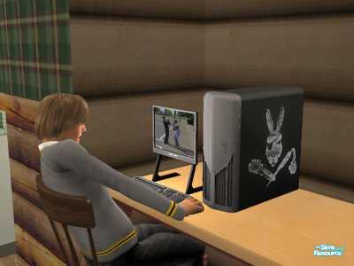 On his new computer, a gift from Humble Man.