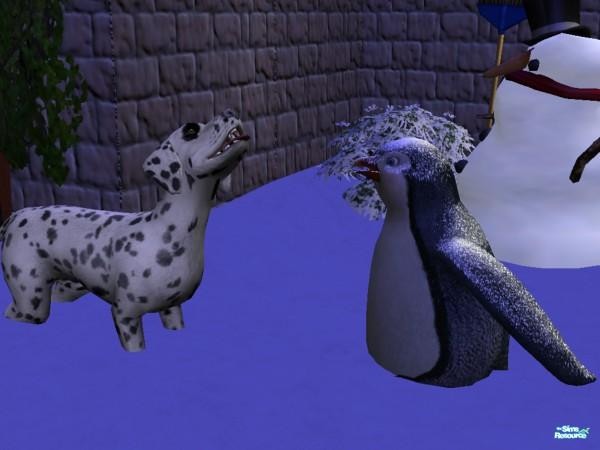 I like this one as it looks as if the dog is laughing. Perhaps the penguin told him a good joke!