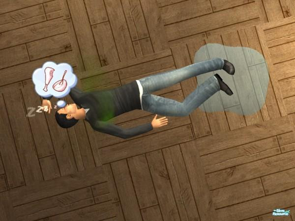 I forgot the name of this sim, but he's passed out from being stuck in a room. I think he passed out after he peed his pants, I can't remember. This screenshot was taken a while ago.
