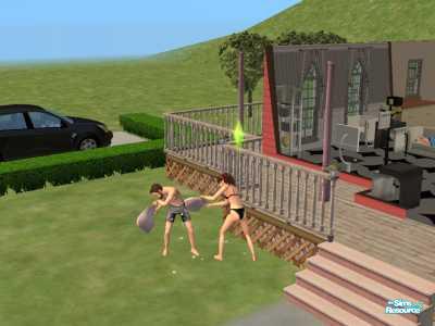 Pillow fight outside.