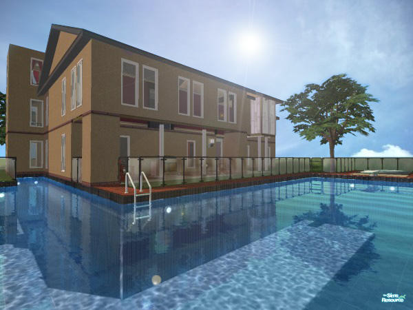 Screenshot of the back of one of my upcoming Contemporary Living house series (there's 3 planned for release so far). This house is actually done, I just have to get around to going through the submission process. Pools are a great way to stay cool in the hot weather, and the water makes for nice imagery. Sun and clouds were added in PhotoShop.