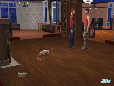 Arlene Foley had a litter of two cats Male and Female named Nermal and Lacey, while daniel and Dwayne observe in the background.
