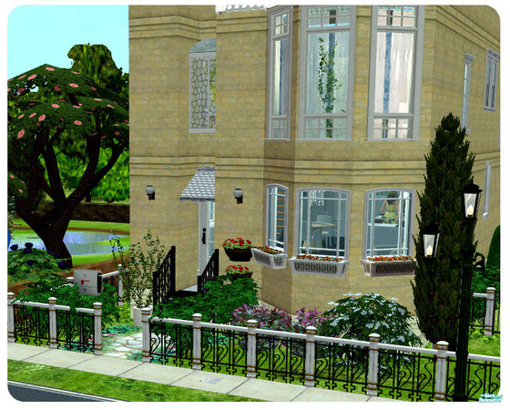 The Brandon's live in this 2 story beige brick flat. This is one of my favorite houses I have created for my Sims. I had a lot of fun creating the gardens (see my other screenshots for the back garden) This house is next to the neighborgood park (on the left).