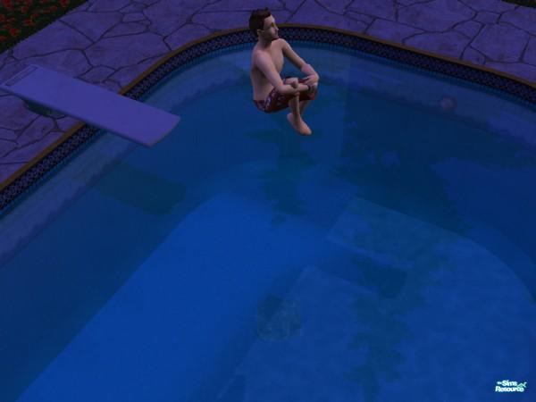This sim did one heck of a cannon ball one night. You can even see his reflection in the pool water.