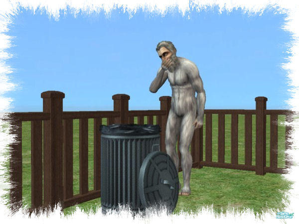 I was building a new home for Bigfoot to live in now he is old and grey . I had not quite finished the kitchen when I saw him go out to the trash can. He lifted the lid and started to eat the contents. I finished building the kitchen double quick as I cant have my favourite character eating garbage.