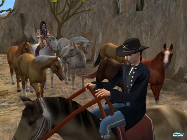 Sgt. Jeb Fincher of the U.S. Calvary (uniform and hat here at TSR by hordriss) stops and questions an Indian on the trail about the questionable ownership of the horses...