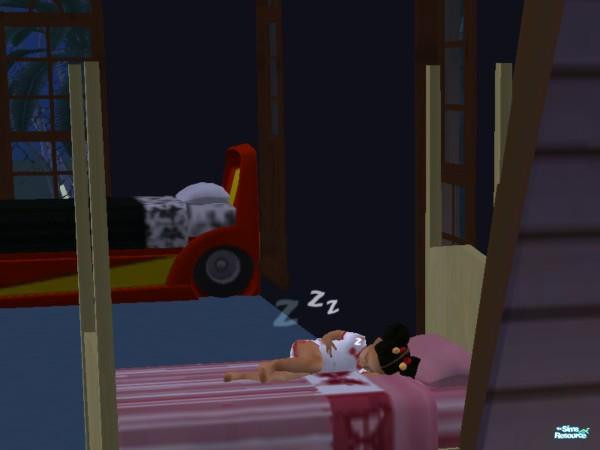 Jamiya as a toddler, sleeping in her bed.