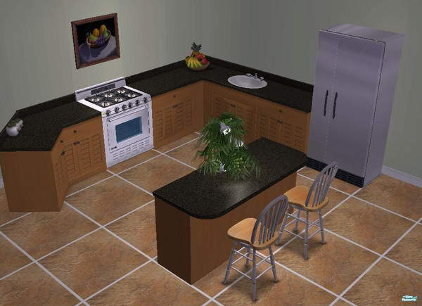My Sim Kitchen showing how my 'Light Brown Ceramic Tile' upload (Available from 7th Jan 08) looks in-game.