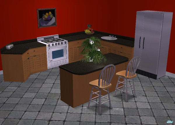 My Sim Kitchen showing how my 'Grey Diamond Stone Tile' upload (Available from 7th Jan 08) looks in-game.