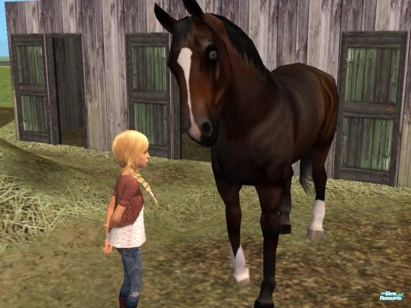 Sharla cautiously approaches her brothers new horse when no one is around. His so big, but she's only somewhat frightened as he snorts and stamps his hoof as she comes closer. She longs for a horse of her own, and whined for one when David got his, but only was given promises for one when she's older.