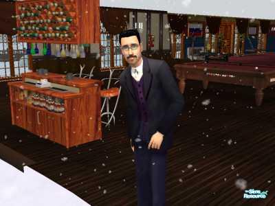 this is an image of Mortimer Goth peering outside from his den,I guess making a dozan snowmen in one afternoon can make a Simmie a little bit uncomftorble(LOL)Anyway,I recreated the entire Goth,Crumplebottom and Bachelor family for my custom 'hood,I tweaked them all a bit to make them more like my creations