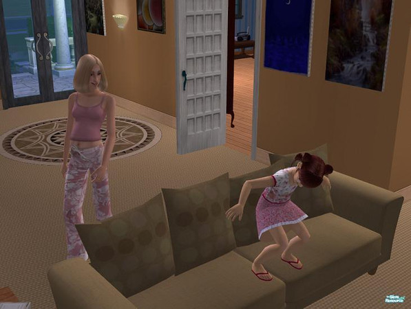 I don't know of ANY real life mom who'd be this amused at her kid playing on the couch like this....but hey, who am I to criticize? Guess she thinks it's funny.