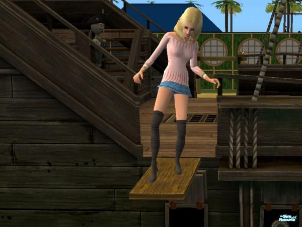 My poor sim was afraid of having her outfit ruined when made to walk the plank.