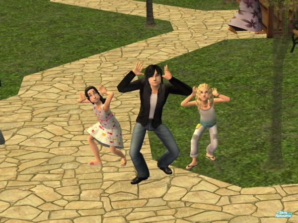 Here's a pic of my sim kids, Jade, Daniel and Amber. It's from a holiday to Takmizu Village and they were messing about. Mouse Ears! Yeah!