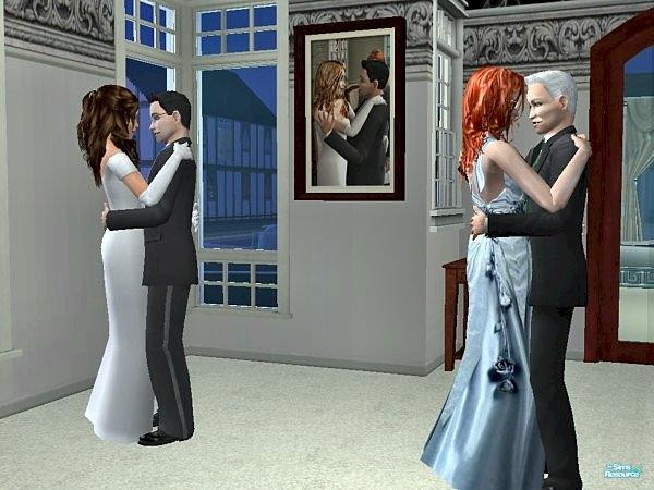 Reacher and his new bride Sabrina dance at their wedding. To the right are his parents Reed and Cora. Between hangs the portrait of Reed and Cora dancing at their wedding in the same room.