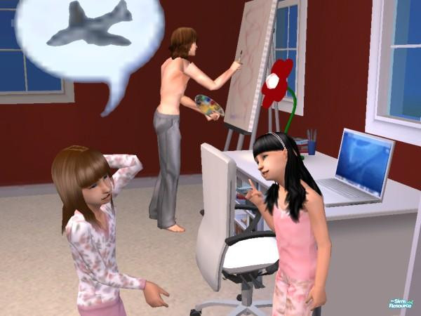What's dad drawing? A plane? No--I think it's abstract.