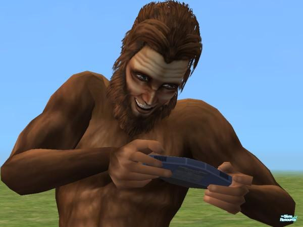 Bigfoot is so happy since discovering how to play on a hand held game!