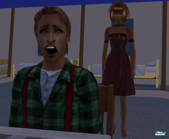 Due to ACR, Ryan and Aurora (the girl in the background) really hit it off. However, due to the nature that is the Asylum Challenge, she ended up peeing on the floor and he walked around with this face for several sim hours.