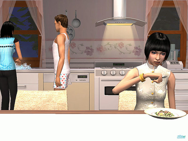 Grandma (the one having dinner) just moved in with her doughter, her husband and their kids. The husband is complaining to his wife about it ^^