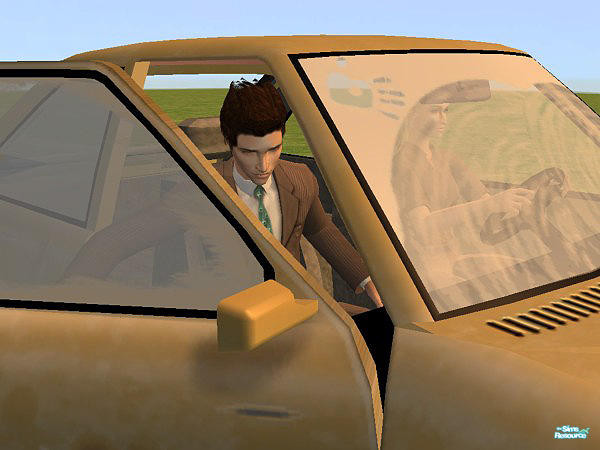 Matt coming home from work, in a car that looks like it hasn't been washed in ages. I wish they'd make it possible for us to use the cars we put in the sims garages to be able to go to work aswell, not just to community lots