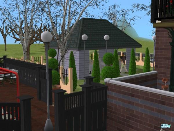 Need to build something that makes a heavier invitation to neighbors during the day? Try building a fashionable version of a park shelter. This one was added to a house lot, or rather, a lot with two condos. Included is the grill.