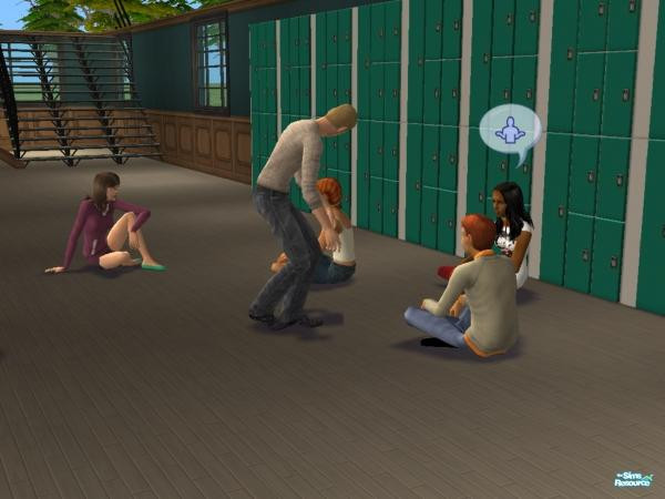Sims hanging out in college