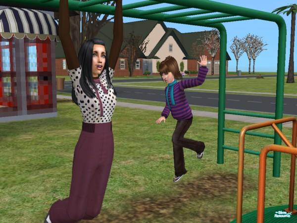 Elise is hanging out on the monkey bars and her cousin, Talia falls as she's trying to get across.
