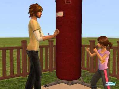 Cael teaches one of his twin girls, Brynn, on the punching bag.