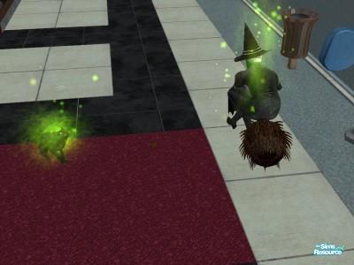 The evil wich and her familiar prepare to launch.