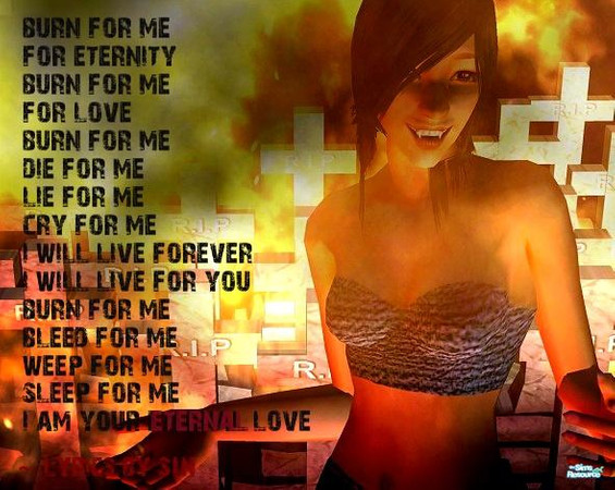 Sin, my vampire, likes living dangerously and plays with fire for kicks. ;D Everything you see in the screenshot - grave markers, fire, Sim - was taken in the game. I took just about an eternity to set and light the shot and get the camera angle right. But it was all well worth the effort. Definitely one of my own favorite snaps to date. =)