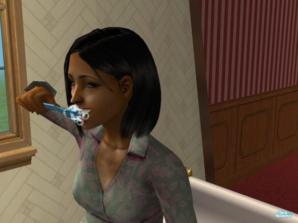 One of my sims brushing her teeth