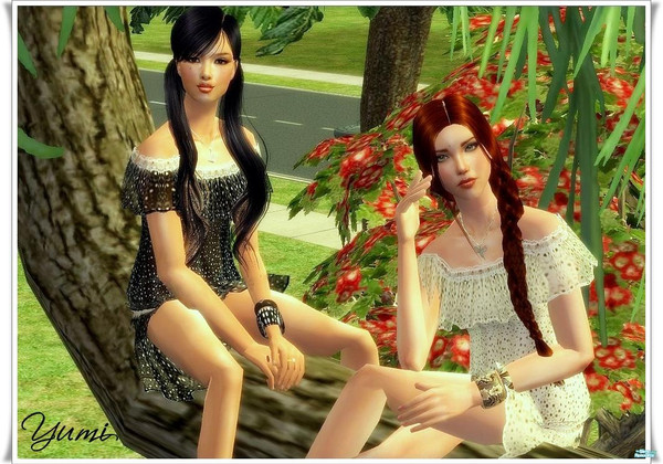 Duas molecas em cima da �rvore.