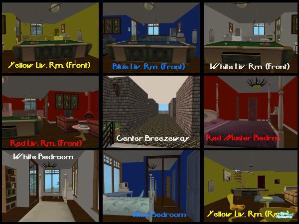 ...Coming September 6th to TSR. There are four apartments that are distinct from each other by their colors on both floors: red, yellow, blue, and white. Notice also the breezeway that runs from the front to the back. There is a playground, swimming pool, cookout area, and a front soccer and basketball area outside. New note: I just found out that if you hit the boolProp_testingCheatsEnabled_true cheat in the Neighborhood View before you move your Sim to an apartment lot, then shift-click on the apartment door they chose to rent, an option will appear asking if your Sims wants to get the rent furnished option, meaning when your Sim buys that apartment, everything in there will come with the place! Now THAT is a cool cheat code! :D