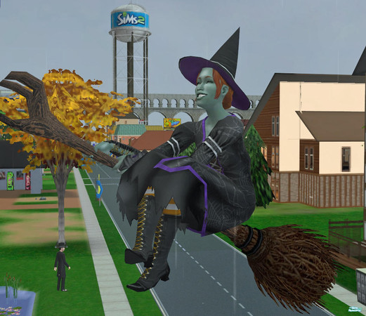 The bad witch taking off on her broom!