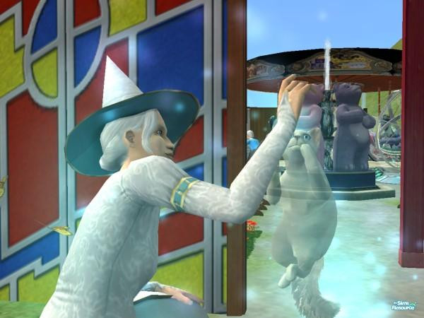 A good witch have summoned a white cat, that cat appears to be a ghost . O_O