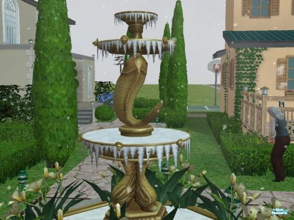 Snow icicles on the fountain.