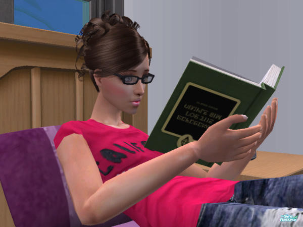 My sim reading before bed.