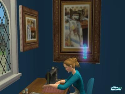 Lotta Badge (she's a challenge Sim) wants to have 5 top rank businesses.......so she's going to open up a boutique selling hand sewn items. Luckily she's got these gorgeous pieces of inspirations. The beautiful paintings are from lisa9999.