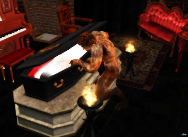 a werewolf is impatiently waiting for his master Lord Dracula to wake up XD ...hopefully Lord Dracula won't be to annoyed by wolfy's peaking XD