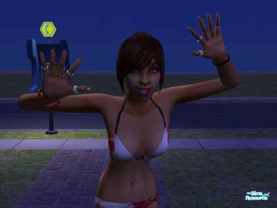 She looks like she is waving her arms all crazy at you trying to get your attention,"hey look at me, I'm right here." But really she was just too scared to jump off the diving board.